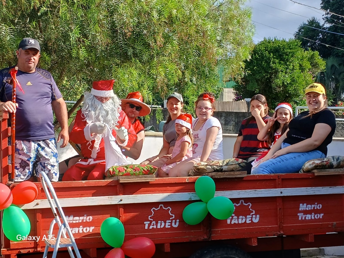 Aplausos ao popular Burrico (Papai Noel), ao popular Gordo (condutor da carroça e agora do trator)... e aos demais integrantes do Grupo... bem como aos apoiadores que fazem a doação de balas!...